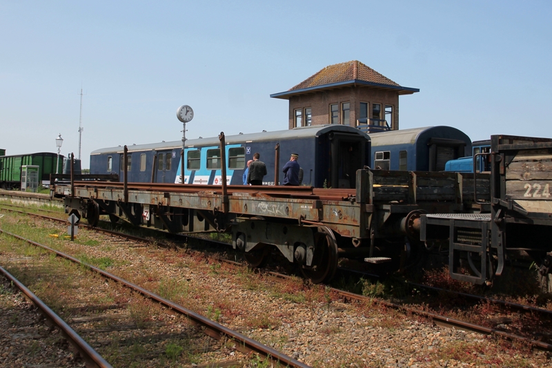 De NS 89278 rijdt mee in een korte goederentrein op het emplacement in Goes.