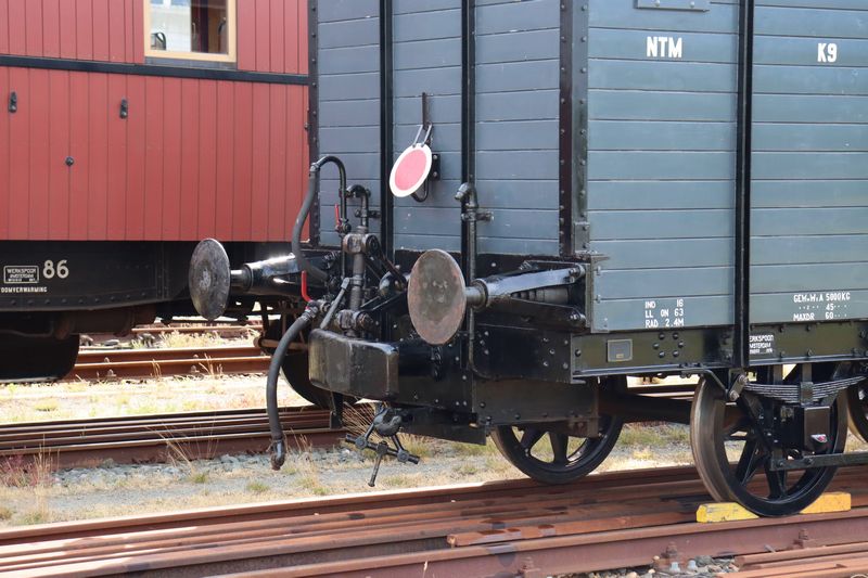 De NTM K9 en de E134 aan elkaar gekoppeld. Het spoorstoot- en trekwerk van de koppelwagen K9 zijn duidelijk te zien. 4 juli 2025. © TreinenInNederland.nl |
