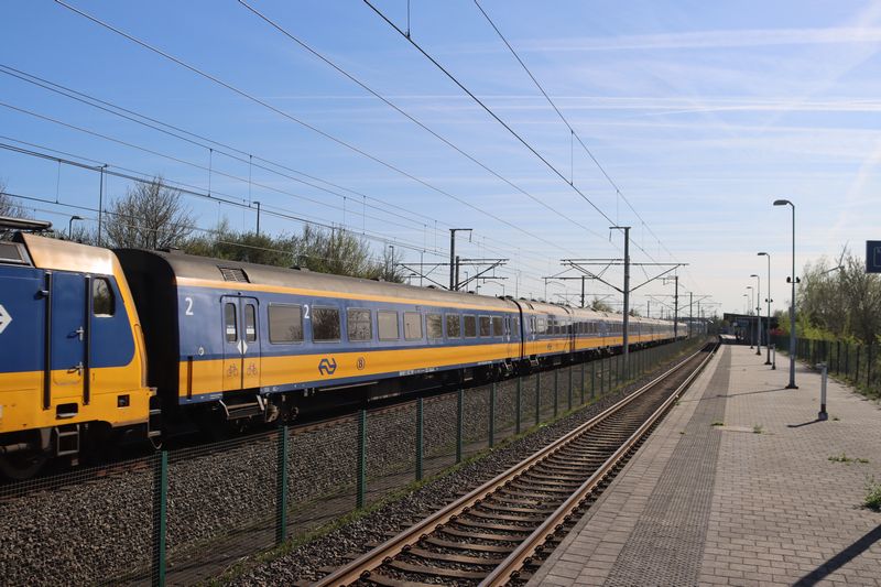 Op Amsterdam Sloterdijk rijden een IC-Direct stam en een IC-Brussel stam langs elkaar. 27 mei 2023. © TreinenInNederland.nl |