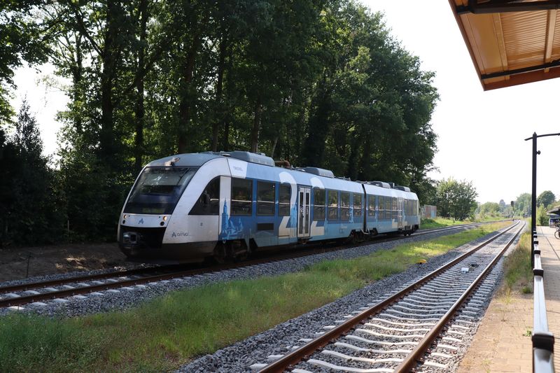 De Arriva 32 komt Delden binnengereden als stoptrein naar Oldenzaal. 13 augustus 2025. © TreinenInNederland.nl |