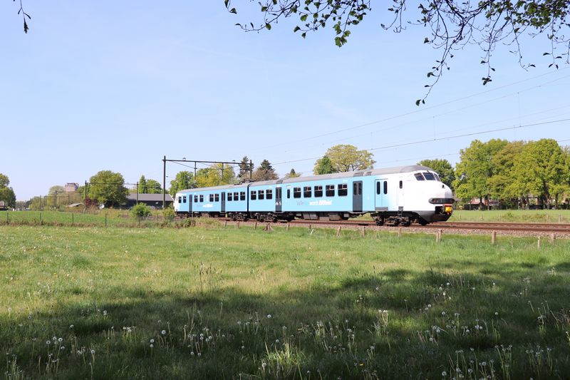 De vers bestickerde 904 van de Stichting 2454 CREW is verhuurd aan Keolis. Op 11 april 2025 reed het treinstel vanuit Roosendaal naar Amersfoort. Op de foto's rijdt de 904 door Schalkwijk richting Amersfoort. © TreinenInNederland.nl |