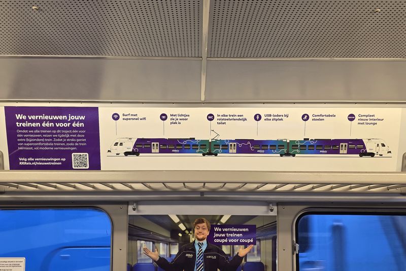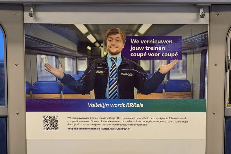 Het interieur van de 904 is bestickerd om te laten zien dat de Valleilijn wordt aangepast naar RRReis. |