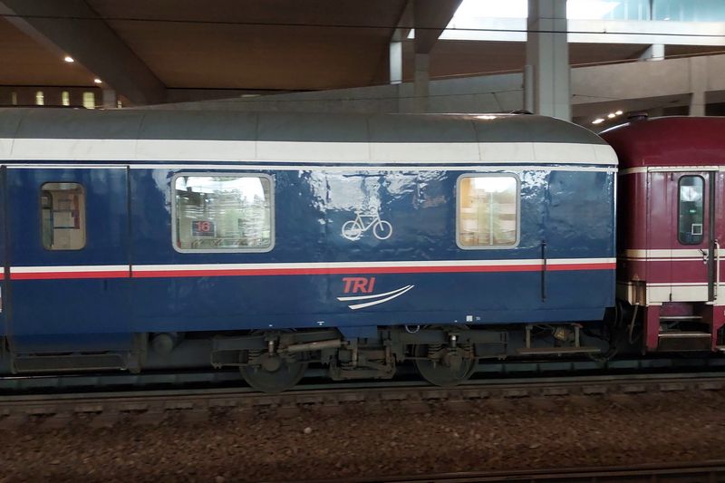 De TCS 186 291 staat met een omgeleide European Sleeper op station Breda te wachten om verder richting Brussel-Zuid te rijden. Op de foto is een rijtuig van het type BDcm te zien met het UIC-nummer 51 56 05-70 512-5. 27 september 2024. © TreinenInNederland.nl |