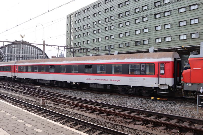 De TCS 186 291 staat met een omgeleide European Sleeper op station Breda te wachten om verder richting Brussel-Zuid te rijden. Op de foto is een rijtuig van het type Bcmh te zien met het UIC-nummer 51 56 05-70 512-5. 27 september 2024. © TreinenInNederland.nl |