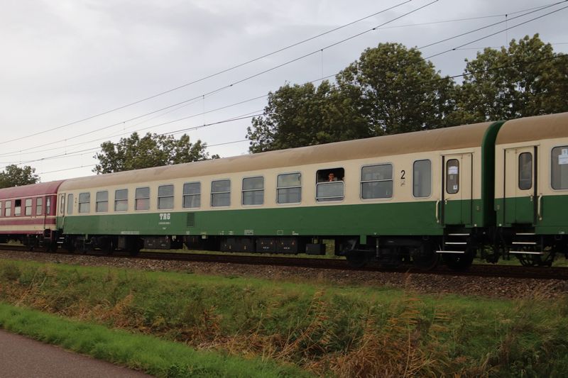 De SBB Cargo 6193 526 rijdt met een Müller Express door Zevenaar richtig Duitsland. Op de foto is een rijtuig van het type Bom met het UIC-nummer 56 80 21-80 080-6 te zien. 29 oktober 2023. © TreinenInNederland.nl |