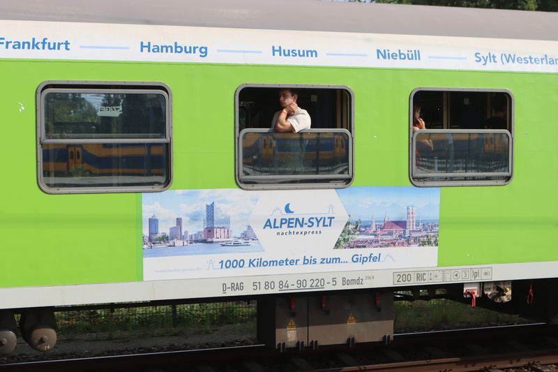 De TCS 101001 rijdt met de eerste Sziget Express van de dag en de Duitse BR101 103003 achterop vanuit Venlo door Eindhoven Centraal naar Utrecht Centraal en Bad Bentheim. Op de foto is een rijtuig van het type Bomdz236.9 te zien met het UIC-nummer 51 80 84-90 220-5. 14 augustus 2024. © TreinenInNederland.nl |