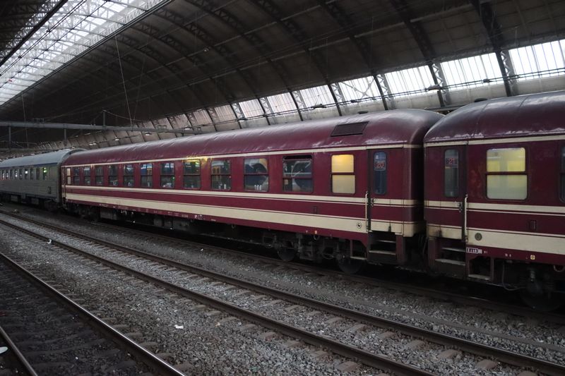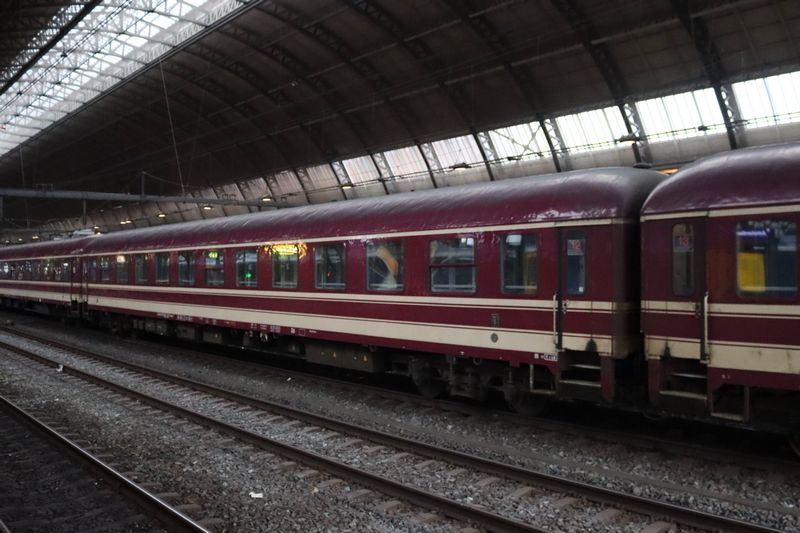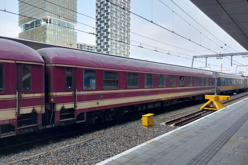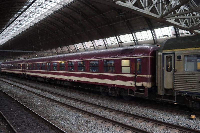 Een Bvcmz-rijtuig met UIC-nummer 61 80 50-71 231-3 van Euro Express rijdt mee in de European Sleeper Praag - Brussel. De foto toont het rijtuig in Amsterdam Centraal. 16 april 2025. © TreinenInNederland.nl |