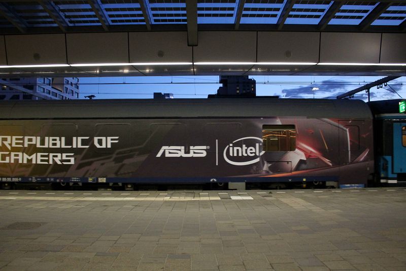 De door Railpromo gehuurde NMBS 2825 rijdt met een sleep bestickerde rijtuigen door Schalkwijk richting Venlo en verder naar Köln Messe-Deutz voor het evenement Gamescom. Op de foto staat vermoedelijk een (nummerloos) NMBS bestickerd I10-rijtuig. 20 augustus 2016. © TreinenInNederland.nl |