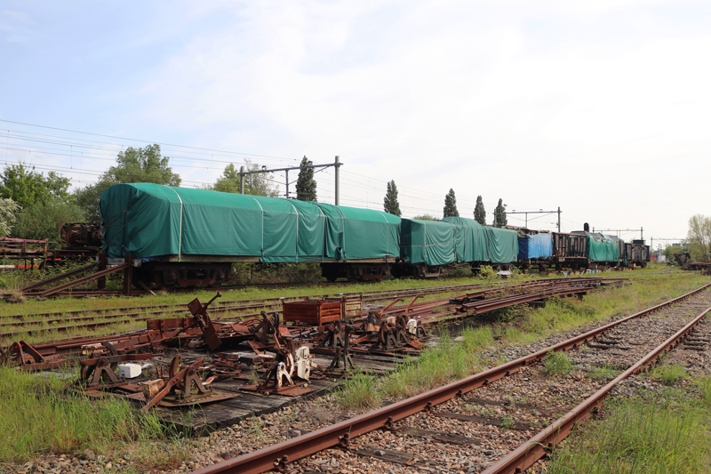 Een rij historische rijtuigen en goederenwagons van de Stoomtrein Goes - Borsele staan in Goes opgesteld. Op de foto zijn de ABd 7516, D 7572, een onbekende goederenwagon, CHRK 24490, P 6028 en D 6015 te zien. Sporen naar het verleden 2023, 18 mei 2023. © TreinenInNederland.nl |