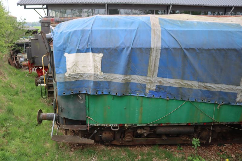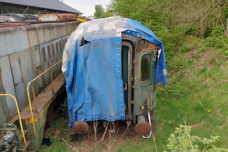 Plan-K rijtuig AB7378 staat op de opstelsporen naast de loods in Beekbergen opgesteld. 9 mei 2024. © TreinenInNederland.nl |