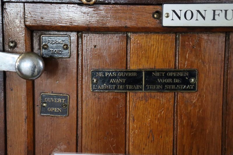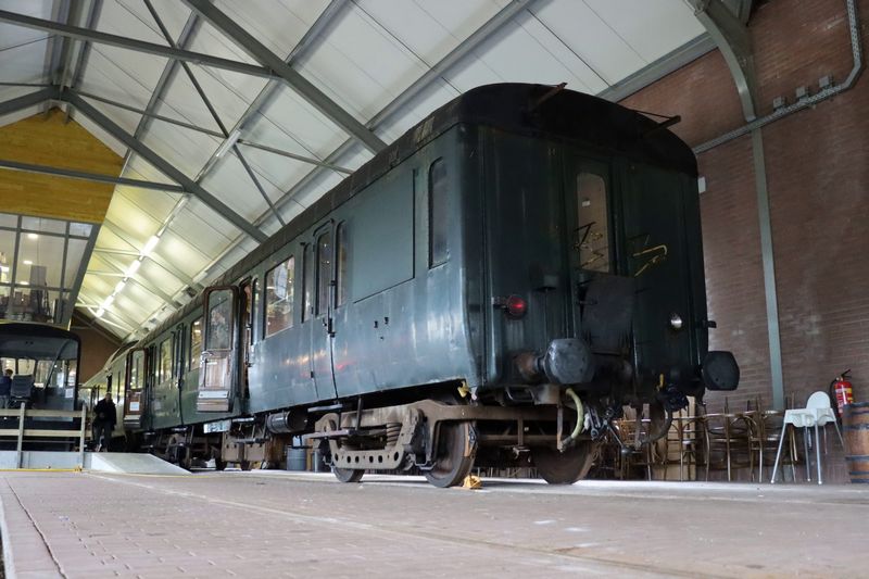 De Belgische rijtuigen B 143 en BD 144 (beide uit 1934) staan in de loods opgesteld. Nationale Stoomtreindag