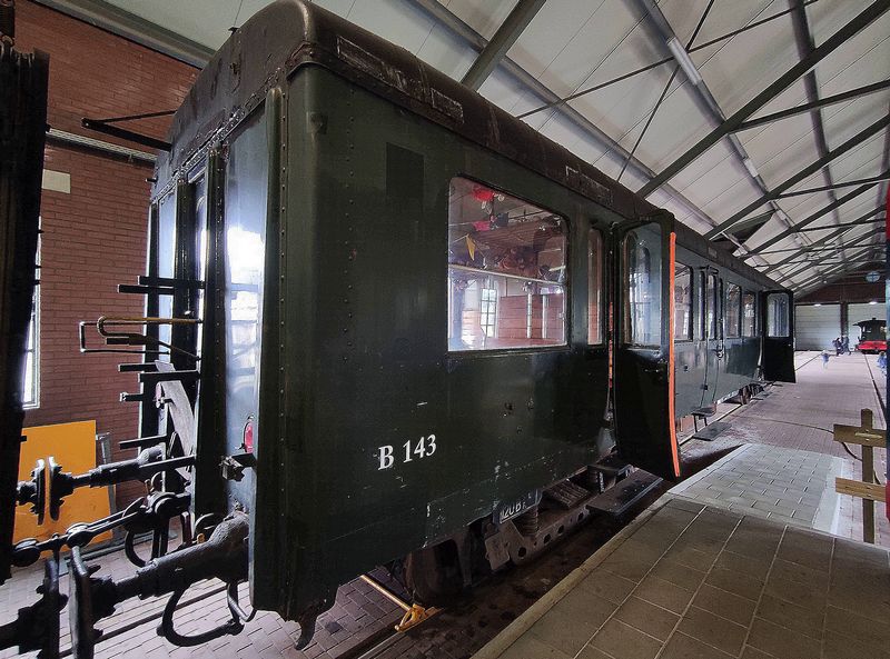 Rijtuig B 143 stond binnen in de loods opgesteld. Stadskanaal onder Stoom 2025 bij de Museumspoorlijn STAR, 21 september 2025. © TreinenInNederland.nl |