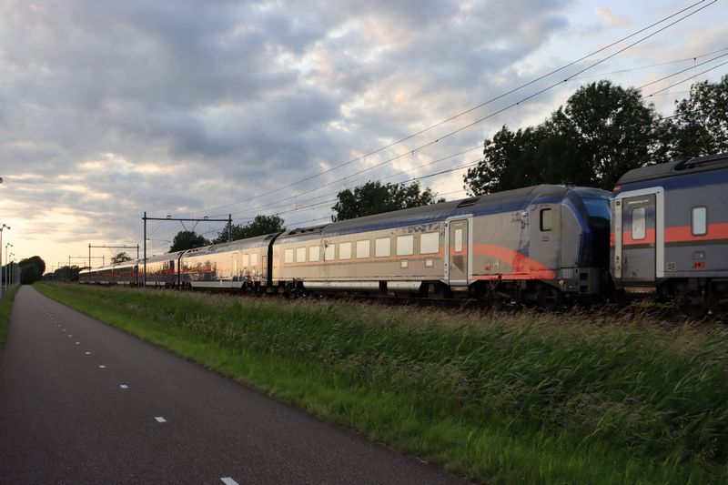 De NSI 6193 932 rijdt met een omgeleide NightJet naar NightJet uit Innsbruck en Wenen door Zevenaar richting Duitsland. 8 juni 2025. © TreinenInNederland.nl |