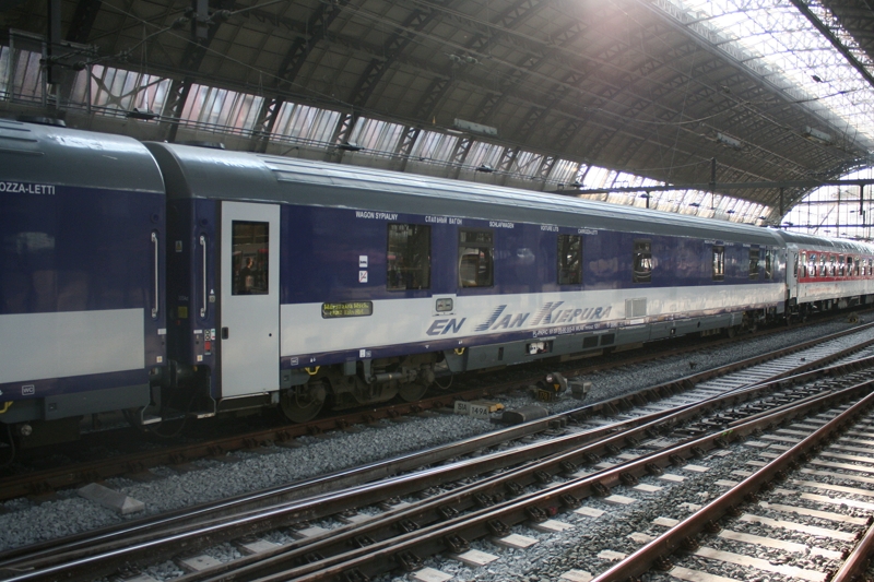 Een rijtuig van het type WLAB10mnouz met het UIC-nummer 61 51 70-90 006-7 staat met een EETC-trein in Amsterdam Centraal. 5 juli 2013. © TreinenInNederland.nl |