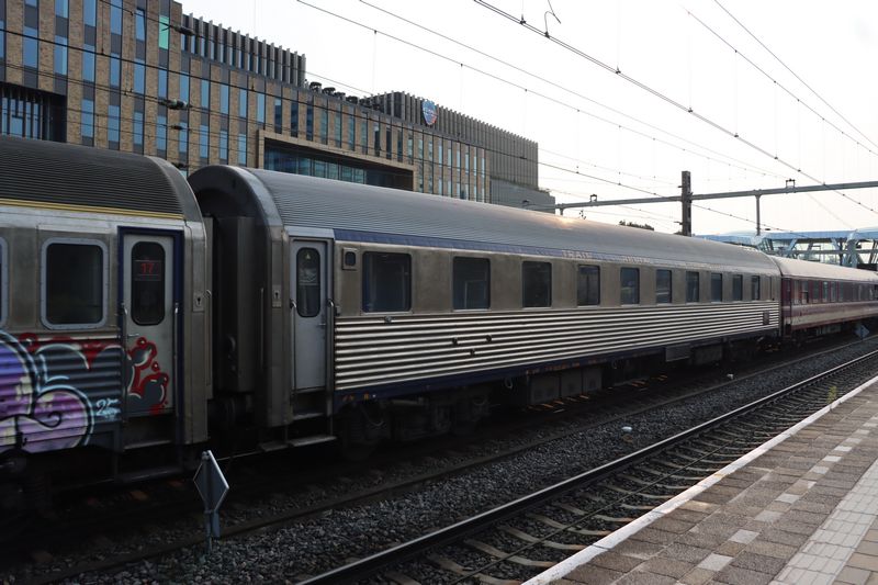 Een rijtuig van het type WLABee met UIC-nummer 61 81 70-70 003-2 in de European Sleeper in Arnhem. 9 juni 2025. © TreinenInNederland.nl |