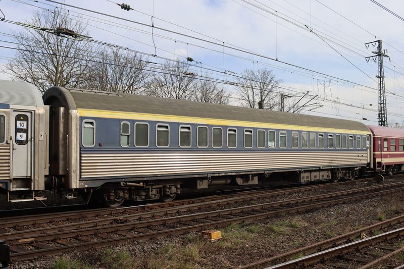 Een WLABm-rijtuig met het UIC-nummer 61 81 70-70 010-7 en een WLABee-rijtuig met het UIC-nummer 61 81 70-70 003-2 te Emmerich. 10 maart 2024. © TreinenInNederland.nl |