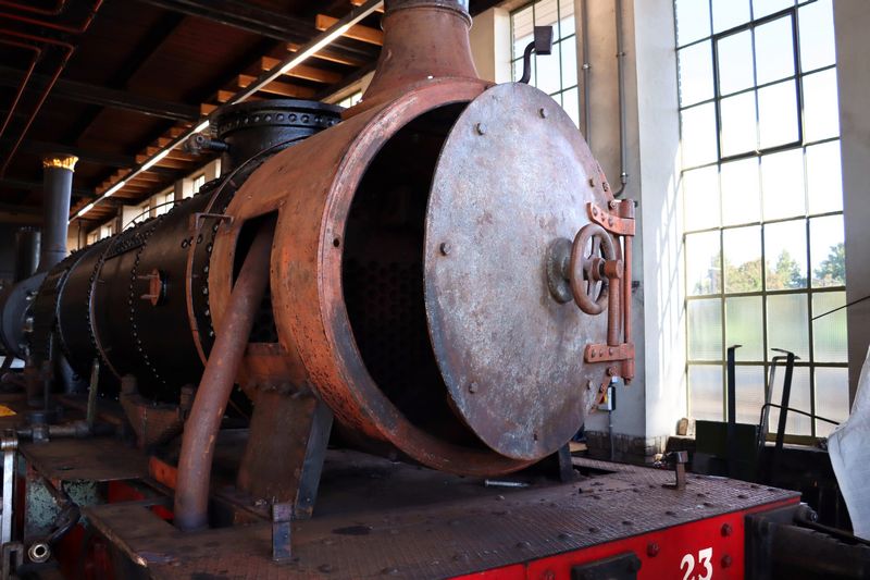 De locomotieven WSM 23 en SHM 16 'Medemblik' in de werkplaats in Hoorn. Bello Festival 2025, 4 juli 2025. © TreinenInNederland.nl |