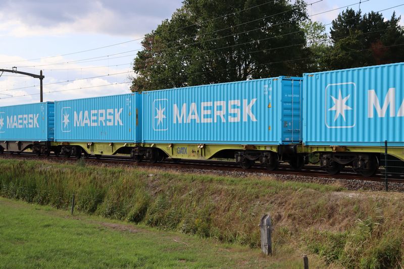 rijdt met een containertrein door Hulten naar Duitsland. 16 juli 2025.